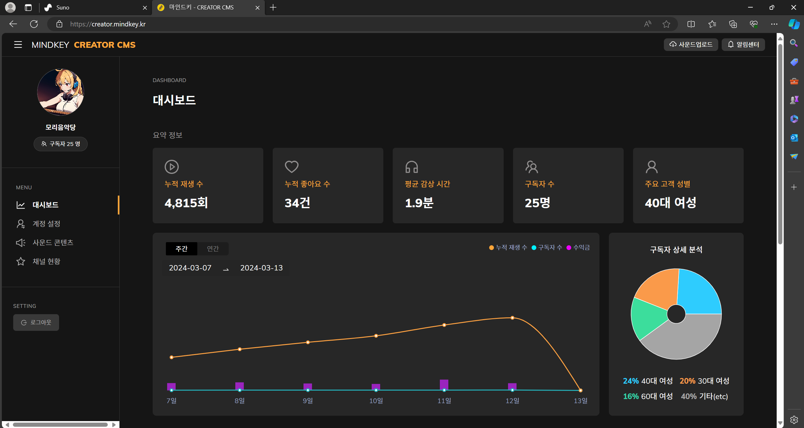 저는 SUNO AI에서 유료를 통해 저작권에 문제가 없으니 수익화를 해보고자 하나의 방법을 제시해봅니다