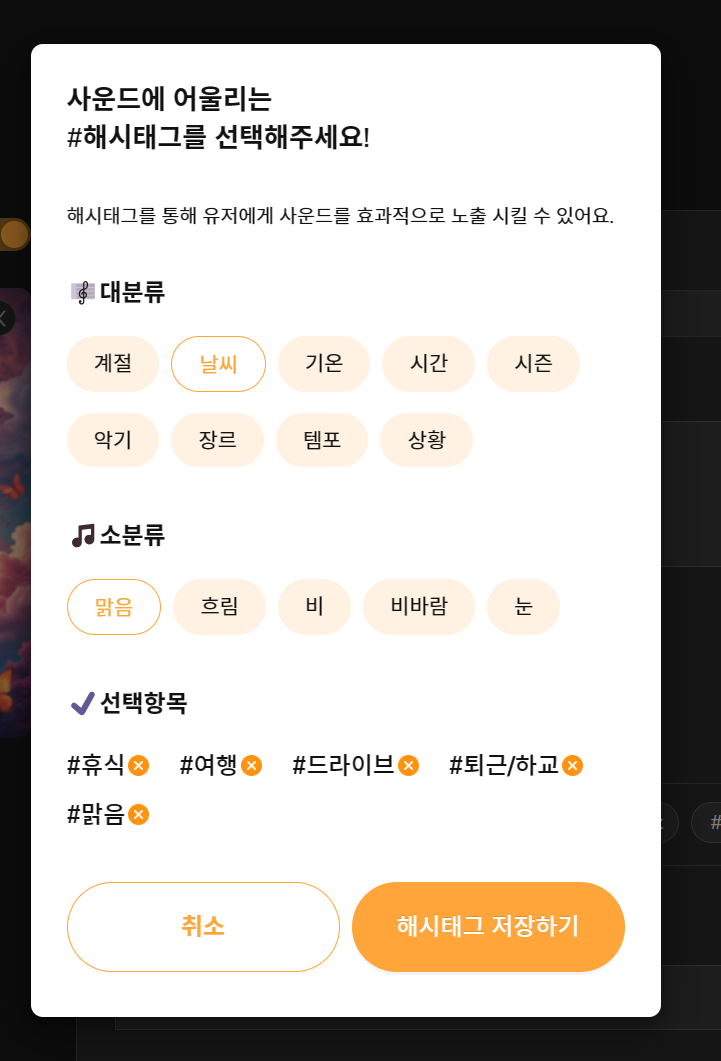 해시태그는 5개만 되니까 노래에 맞는 걸로 잘 선택을 해봐야합니다