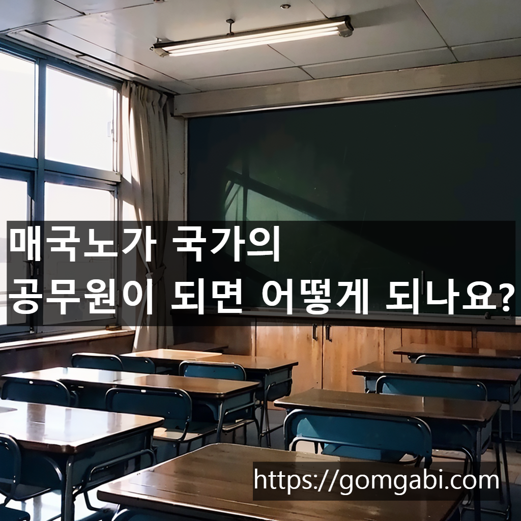 매국노가 공무원이 되면 그 결과는 국가에 심각한 결과를 초래할 수 있습니다. 이는 신뢰를 무너뜨리고, 국가 안보를 약화시키며, 사회를 불안정하게 만들 수 있습니다. 민주적 제도의 완전성이 훼손되고 부패가 만연할 수 있습니다. 국가의 미래를 보호하려면 충성심, 성실성, 국가 복지에 대한 헌신을 바탕으로 공무원을 선택하는 것이 중요합니다. 권력을 가진 사람들이 국가의 최선의 이익을 최우선으로 생각해야 국가가 번영하고 안정과 안보를 유지할 수 있습니다.