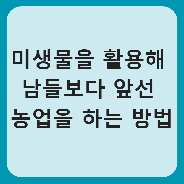 농부들이 미생물의 힘을 제대로 이해하고 활용한다면, 우리는 더 건강하고 지속 가능한 농업 시스템을 만들 수 있습니다. 미생물은 단순한 생명체가 아니라 농업 혁명의 핵심 주체입니다. 우리는 이제 미생물의 잠재력을 완전히 인식하고, 이를 농업 현장에 적극적으로 적용해야 합니다.