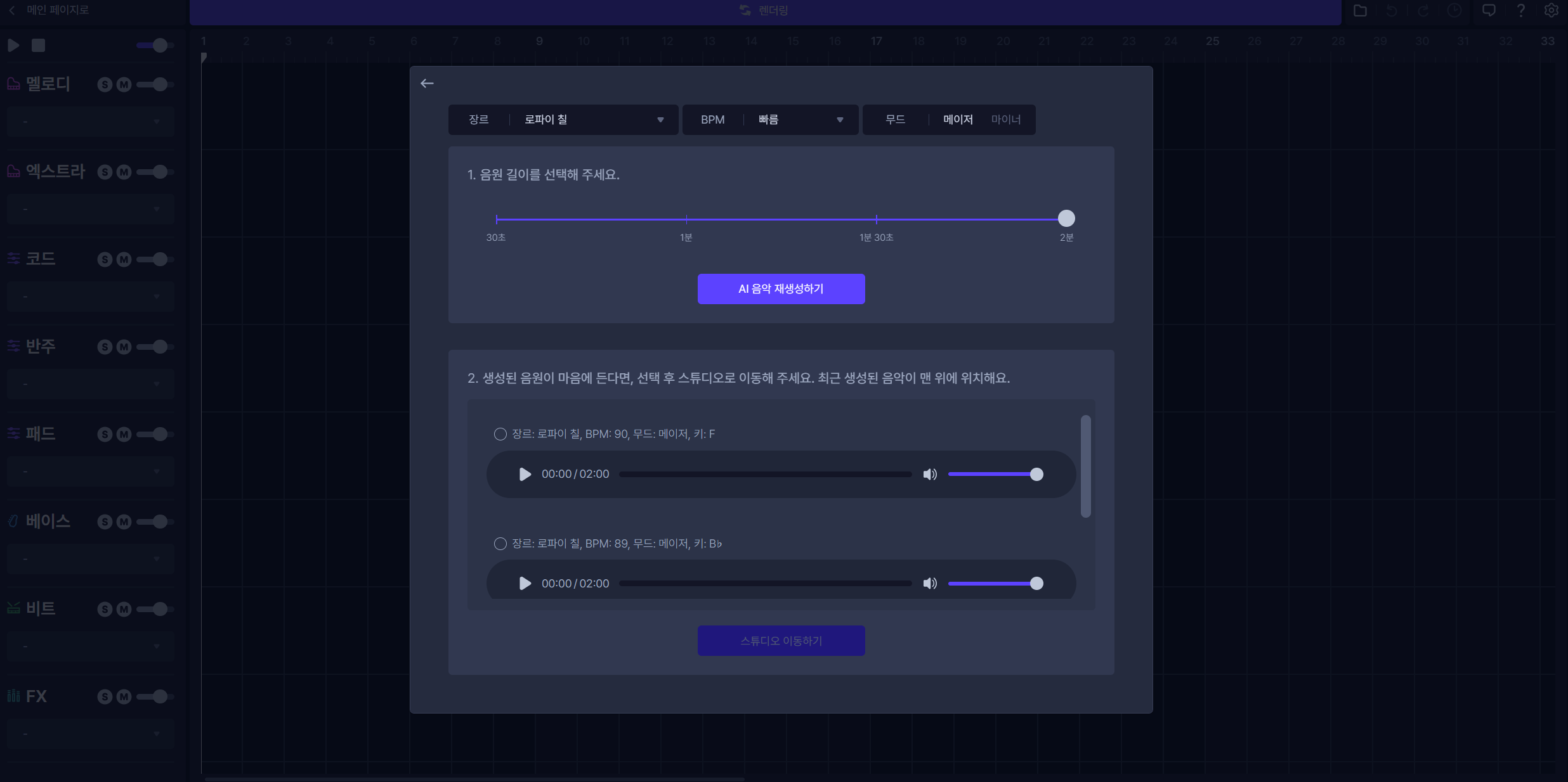 노래 스타일과 시간, 비트,무드 등을 설정하면 끝