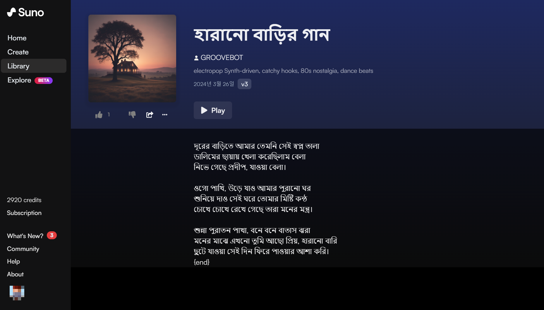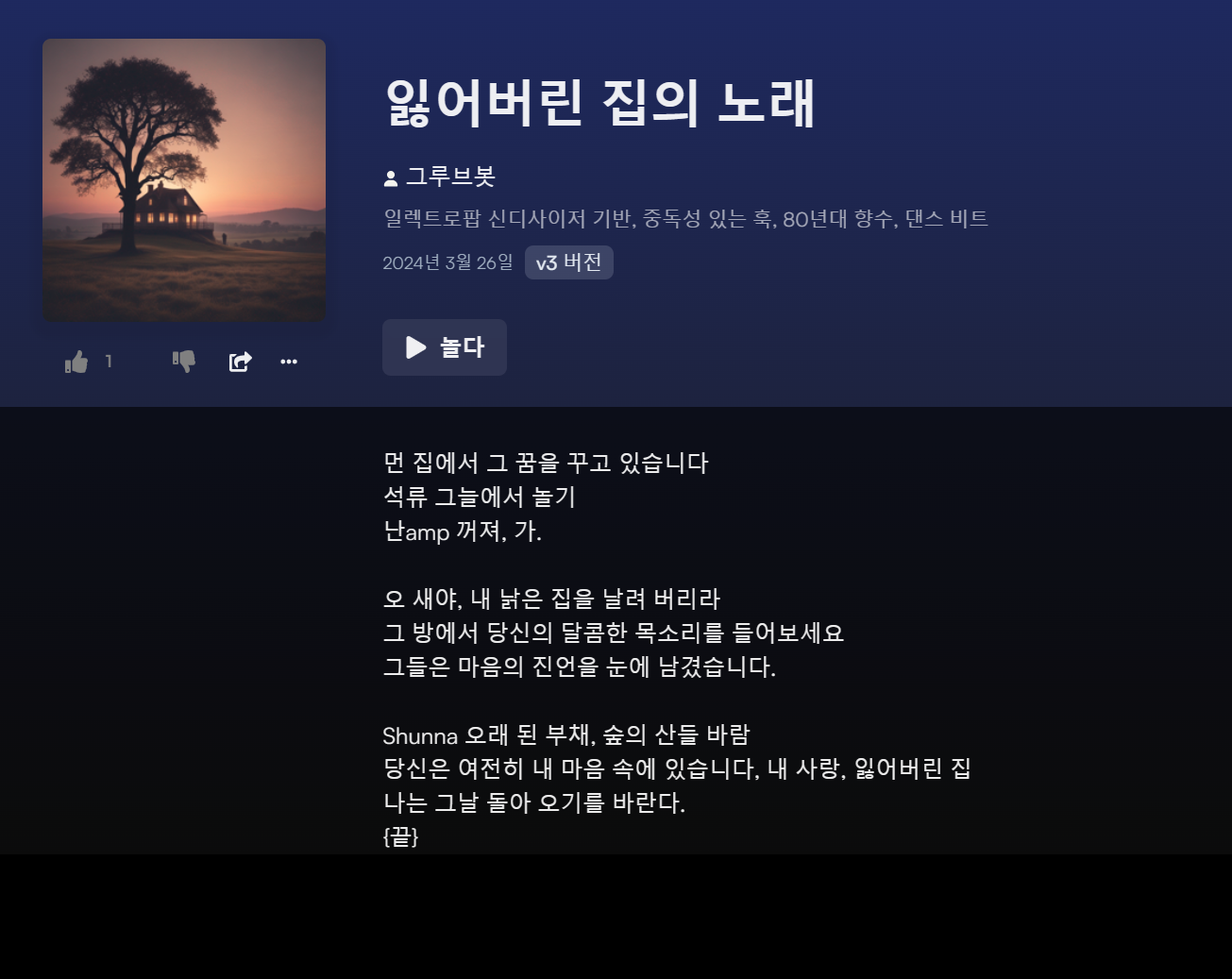 음악을 잘 모르는 사람으로써 편하면서 퀄리티가 좋은, 그리고 원하는 방향의 노래를 만드는 AI로는 SUNO AI가 아직까지 가장 좋은 것 같습니다