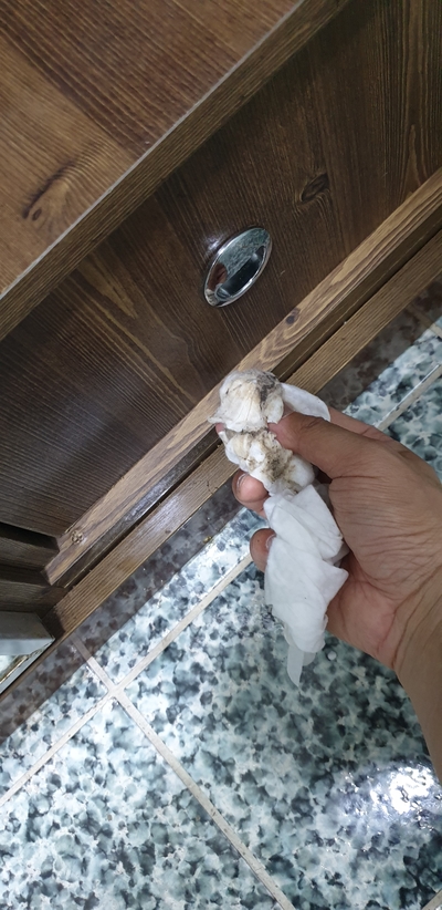 욕실에 때가 신경쓰여 가지고있던 티슈로 닦아보았는데 허탈하게도 지워지고 티슈엔 검은색으로 묻어나오고 있었습니다. 이에 좀더 닦아보니 깨끗하게 닦였습니다. 네..닦을 수 있었습니다.
