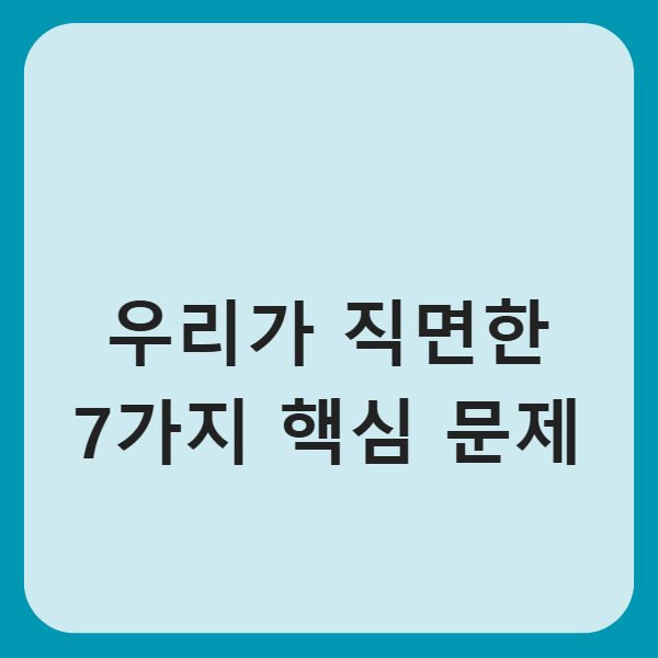 2025년, 한국 사회는 이전보다 더 복잡하고 다층적인 문제들 속에 놓여 있습니다. 경제, 정치, 교육, 환경, 인구 구조 등 여러 분야에서 불안정성과 변화의 파도가 겹치고 있습니다. 이번 글에서는 2025년 현재 한국이 직면한 7가지 주요 사회 문제를 정리하고, 그에 대한 분석과 대처 방안을 함께 살펴보겠습니다.