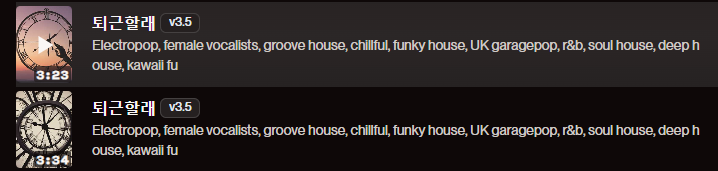 SUNO에서는 다영한 예시가 있기도 하고 이미만들어진 노래의 스타일을 따라할수도 있습니다.
