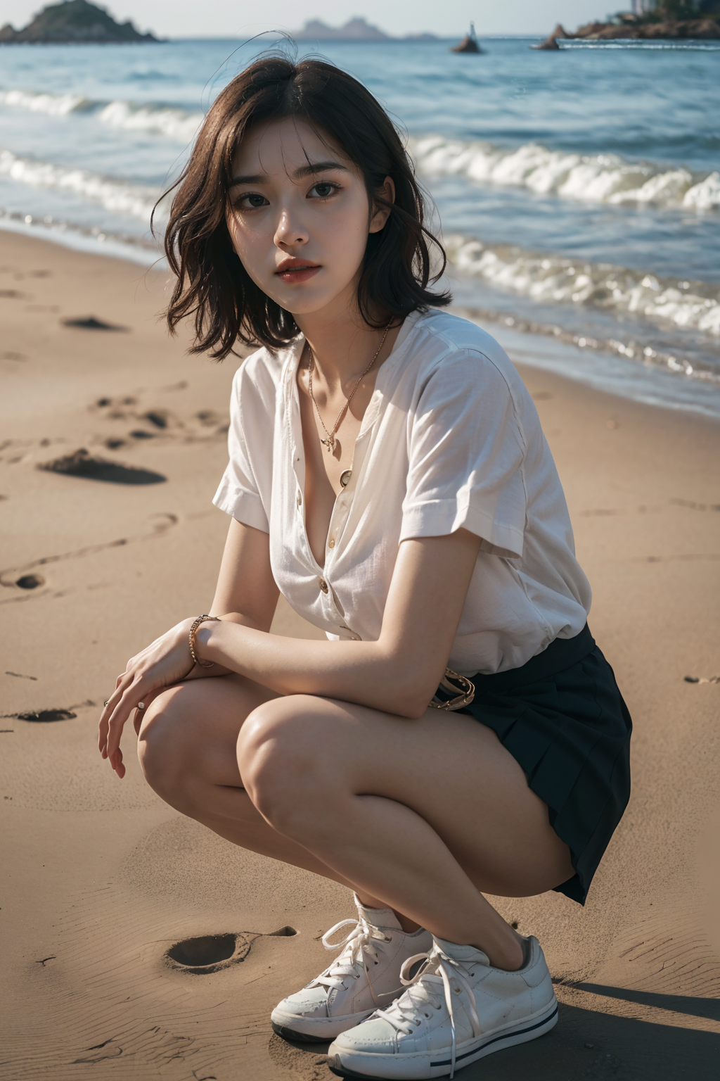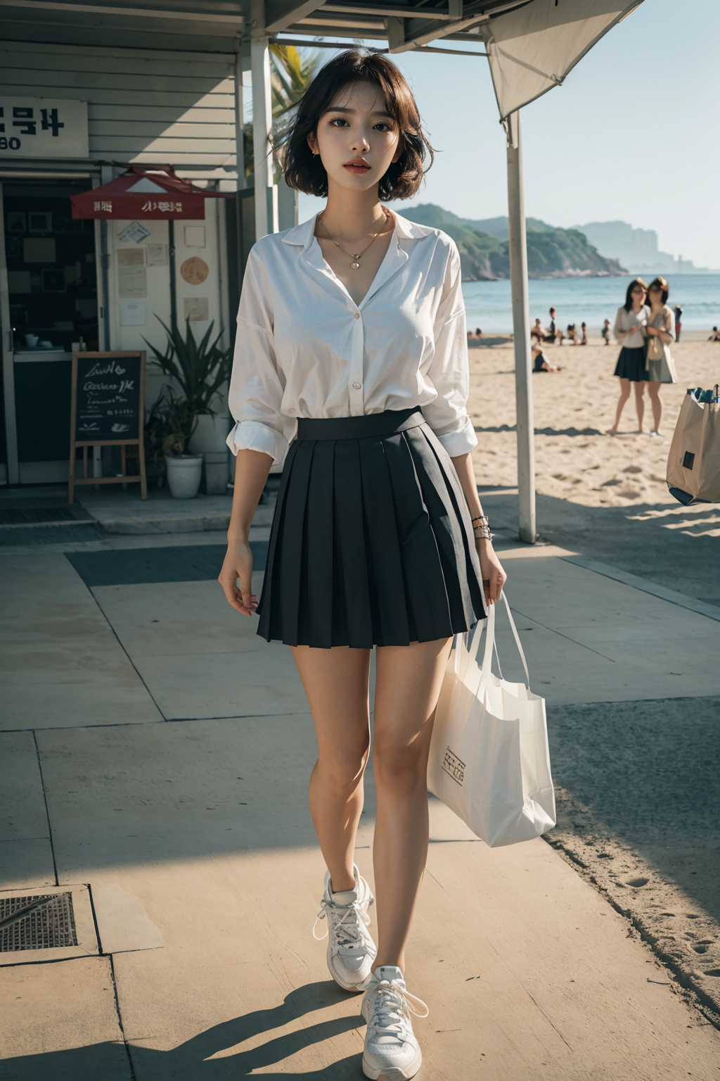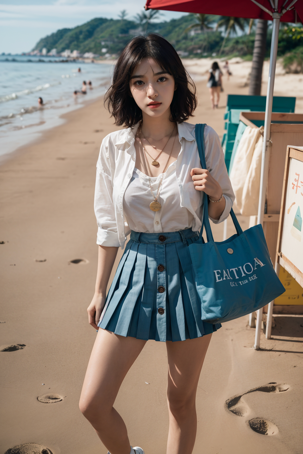 a woman on a summer beach