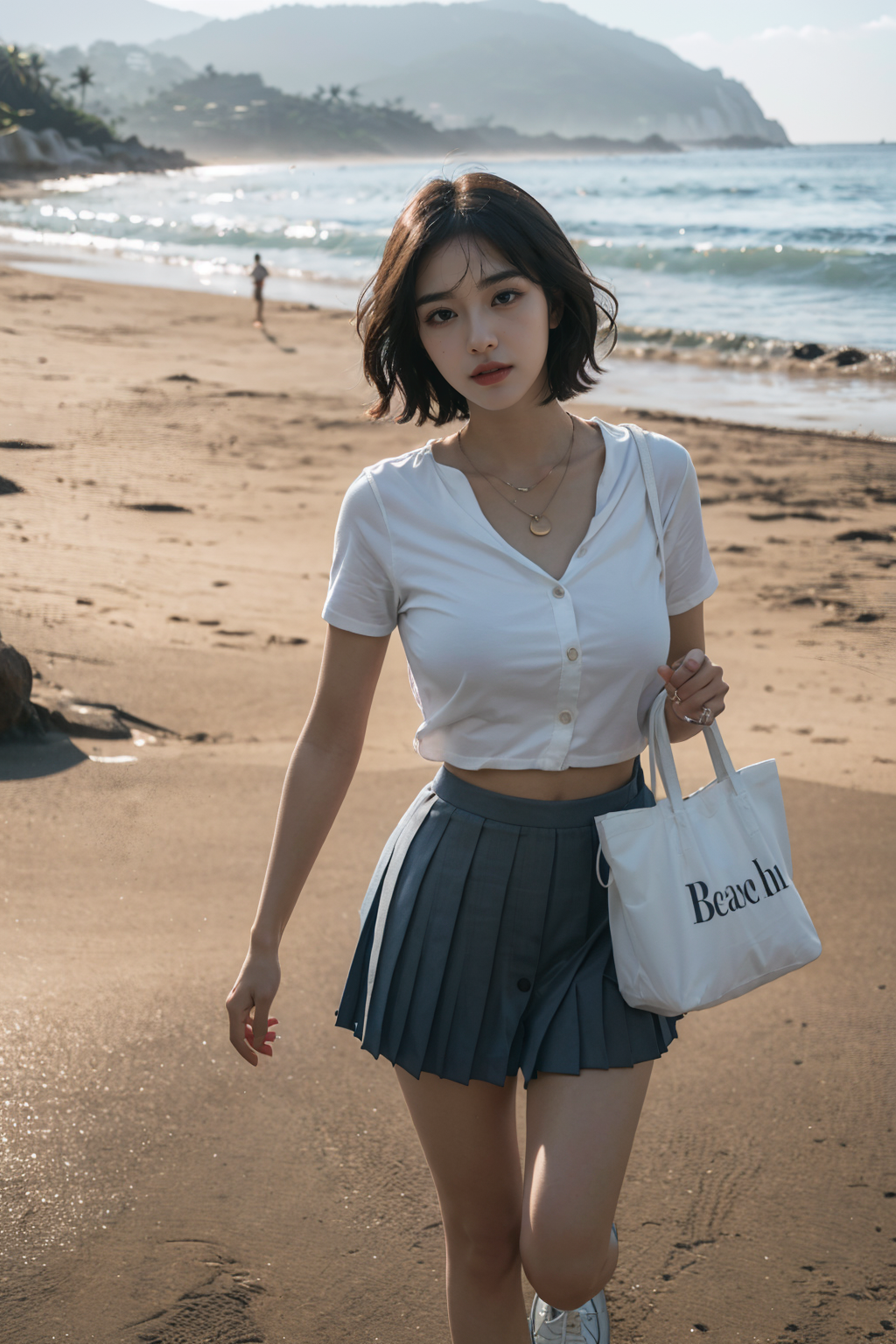 a woman on a summer beach