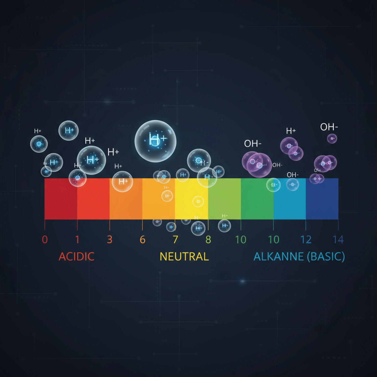 화학적으로는 pH = -log[H⁺] 로 계산됩니다. 즉, 수소 이온이 많을수록 pH 수치는 낮아지고, 산성이 강해집니다. 반대로 수소 이온이 적고 수산화 이온(OH⁻)이 많으면 pH는 높아져 염기성을 띱니다.